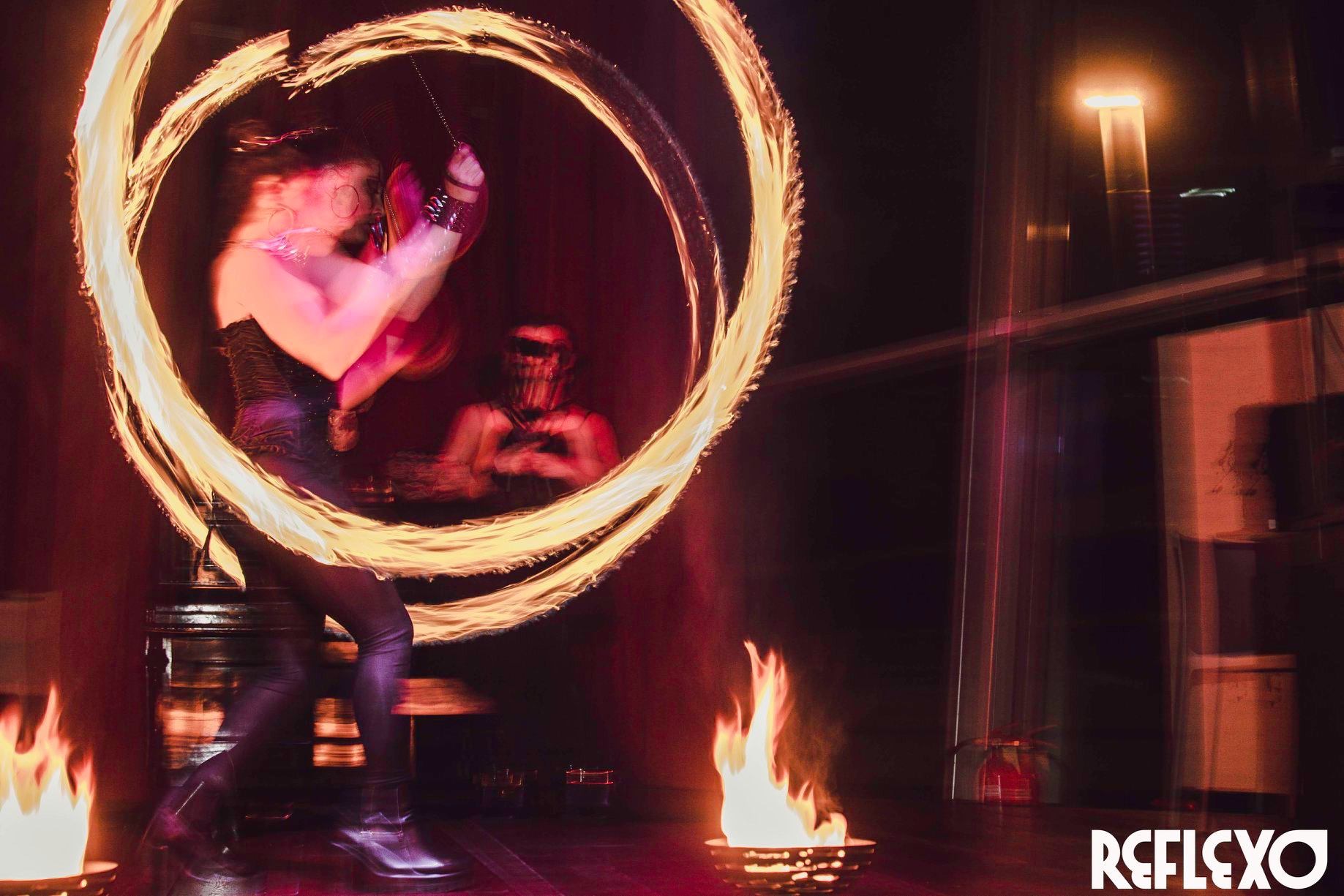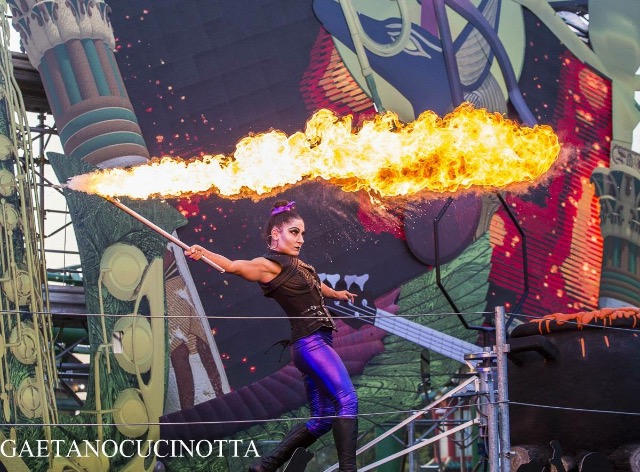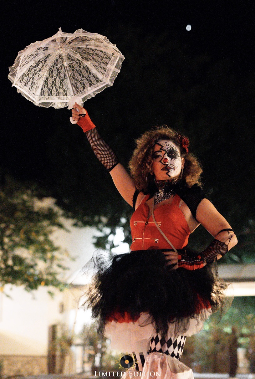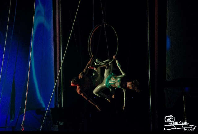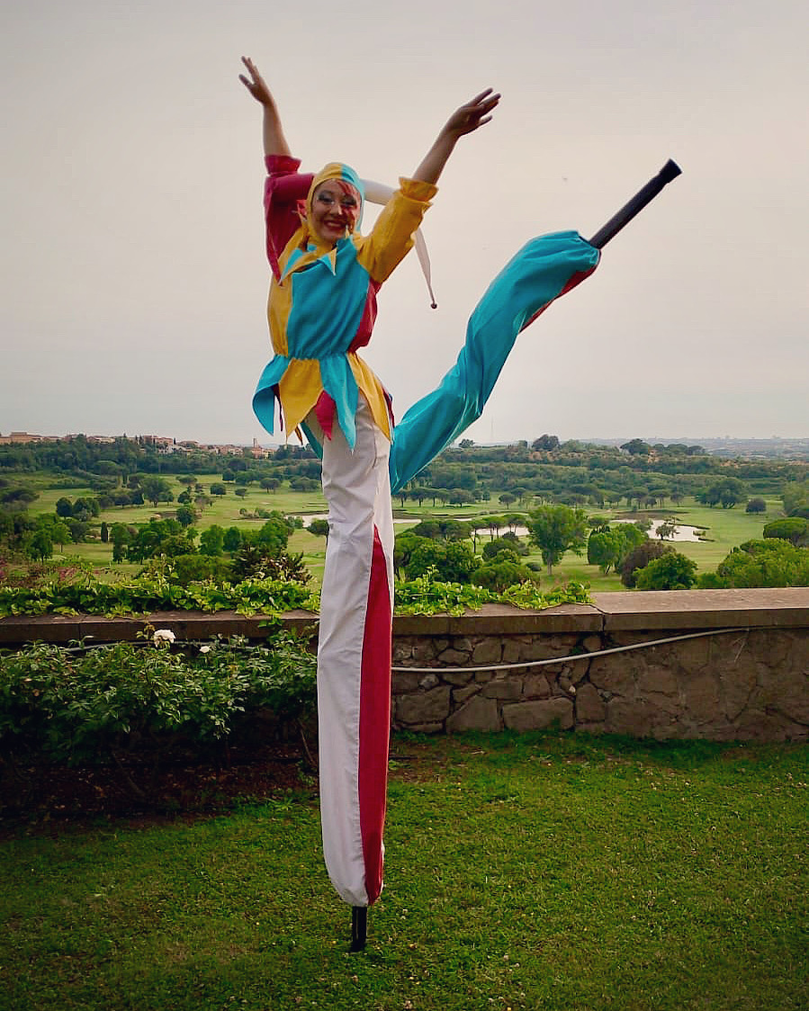 Sono un’ artista a 360 gradi, con specialità nelle arti circensi, quindi trampoli, fuoco, danza aerea e non solo.