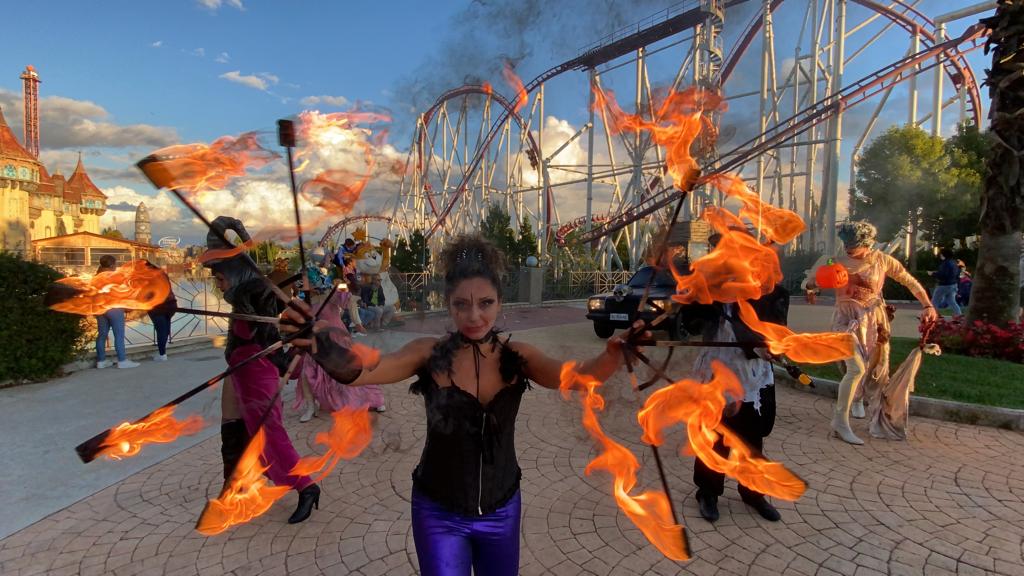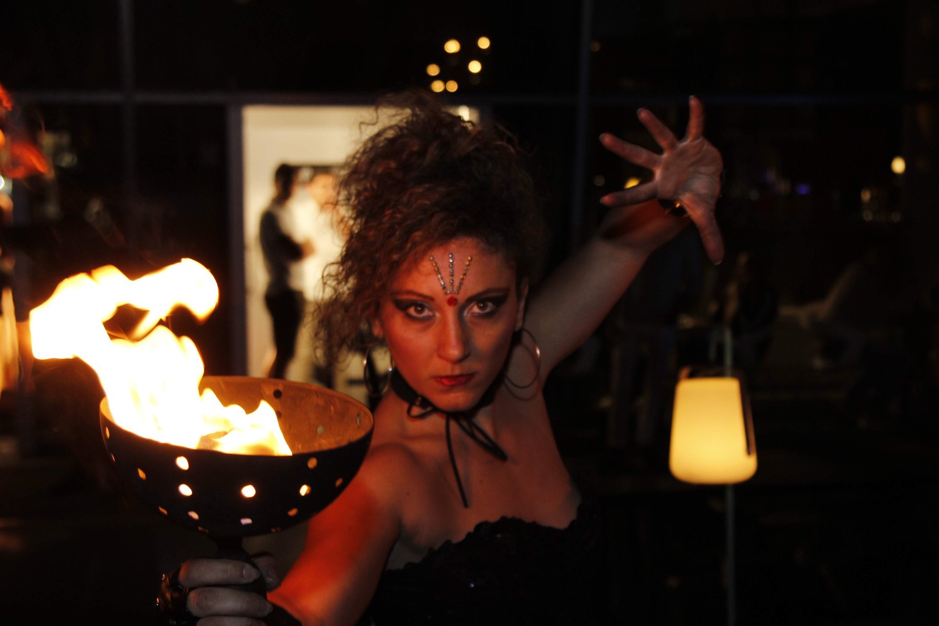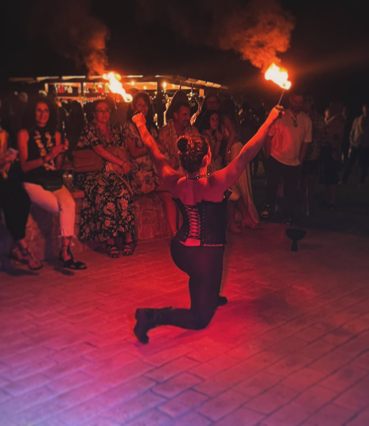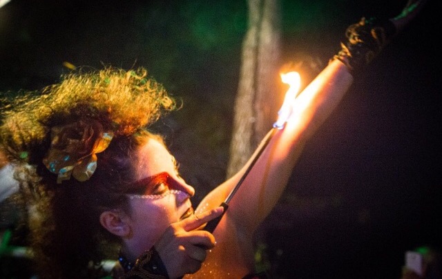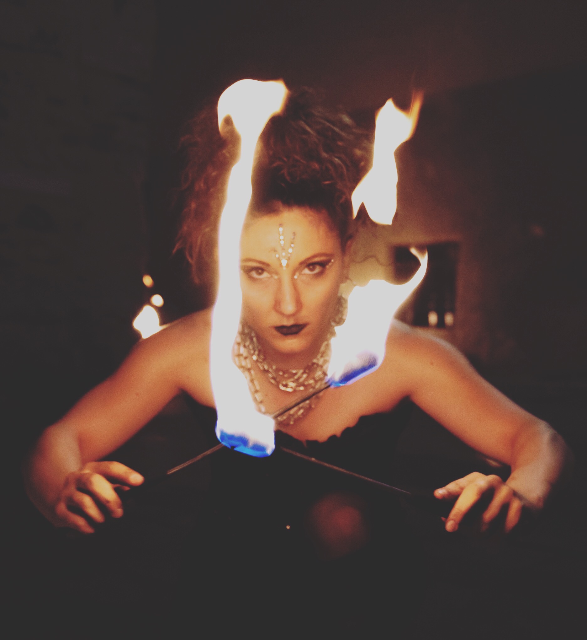 Sono un’ artista a 360 gradi, con specialità nelle arti circensi, quindi trampoli, fuoco, danza aerea e non solo.
