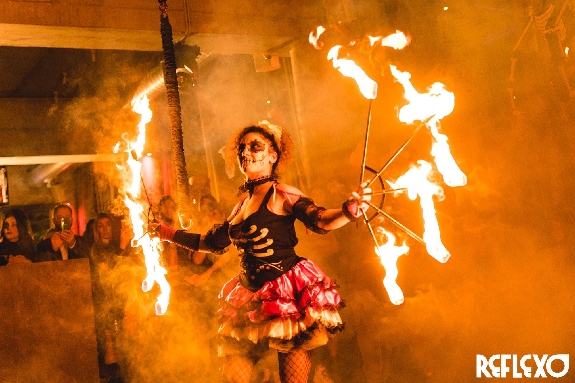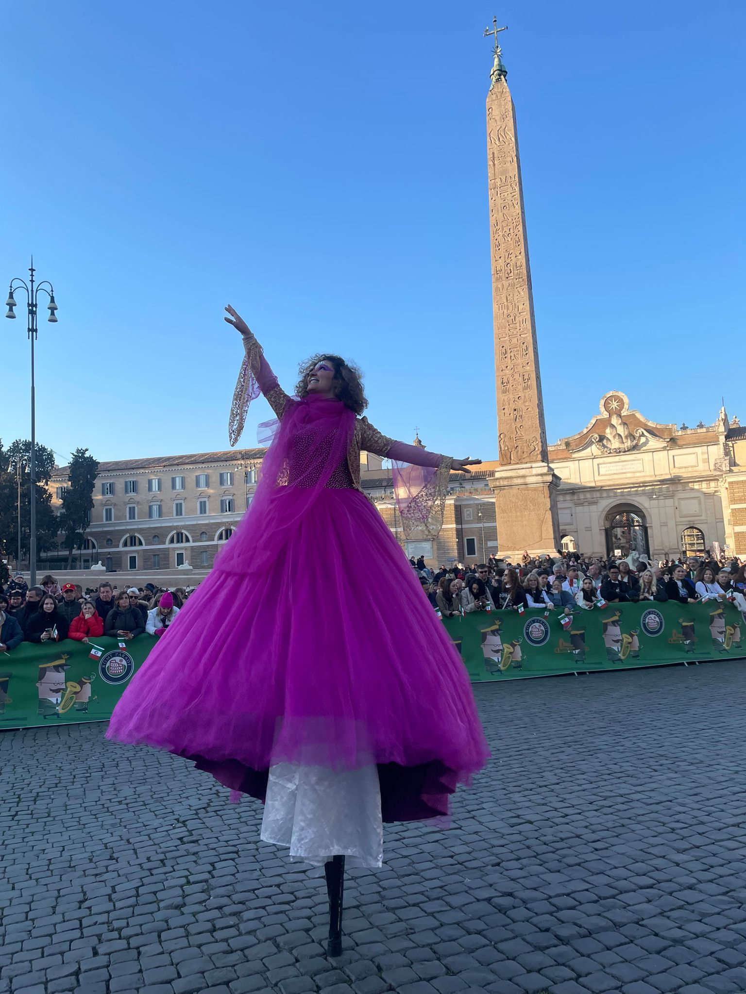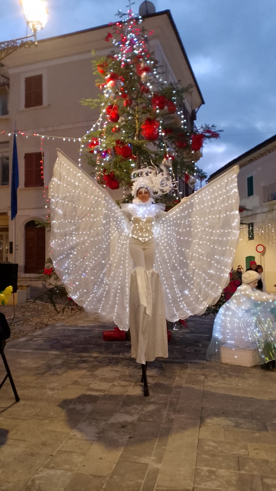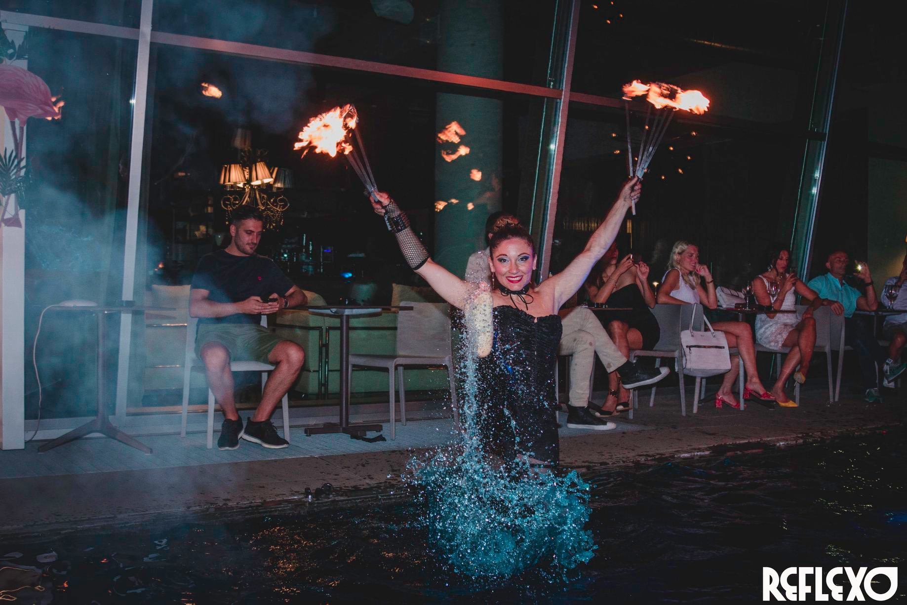 Sono un’ artista a 360 gradi, con specialità nelle arti circensi, quindi trampoli, fuoco, danza aerea e non solo.