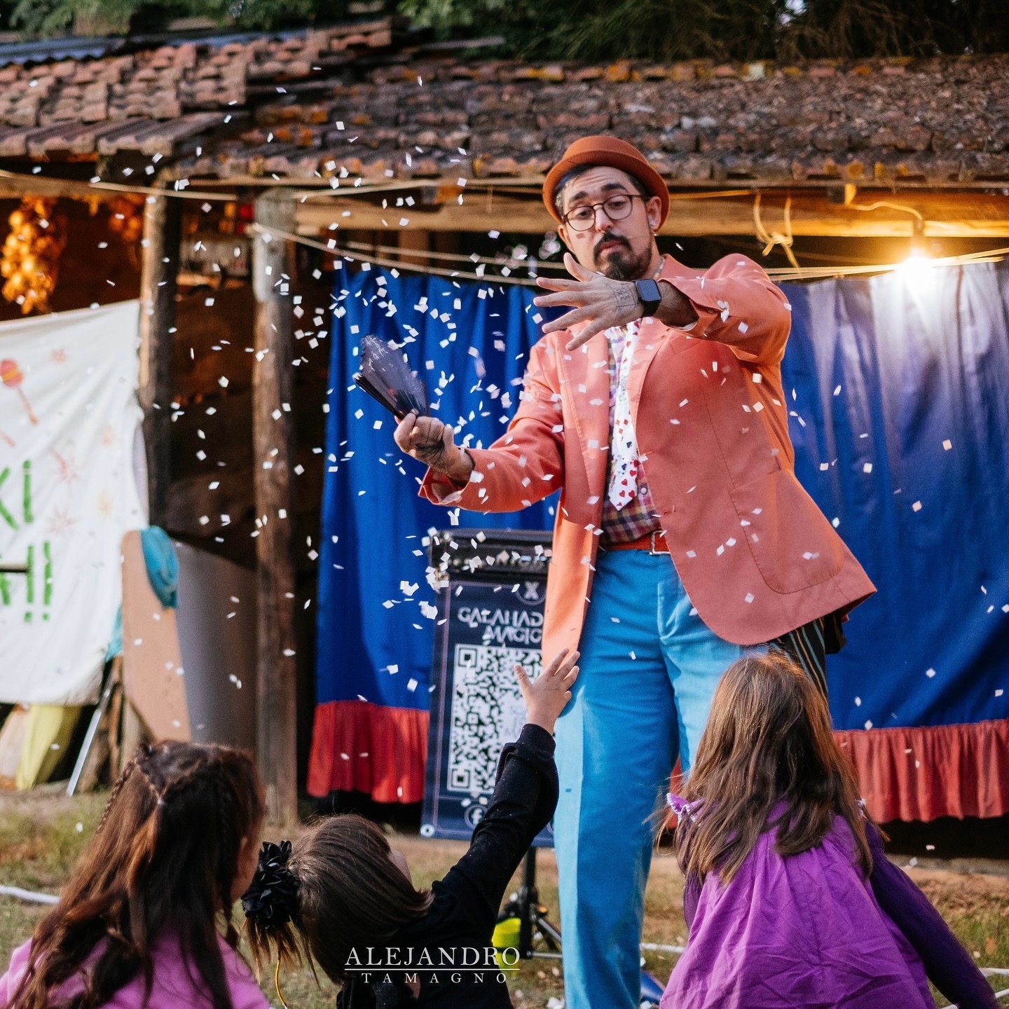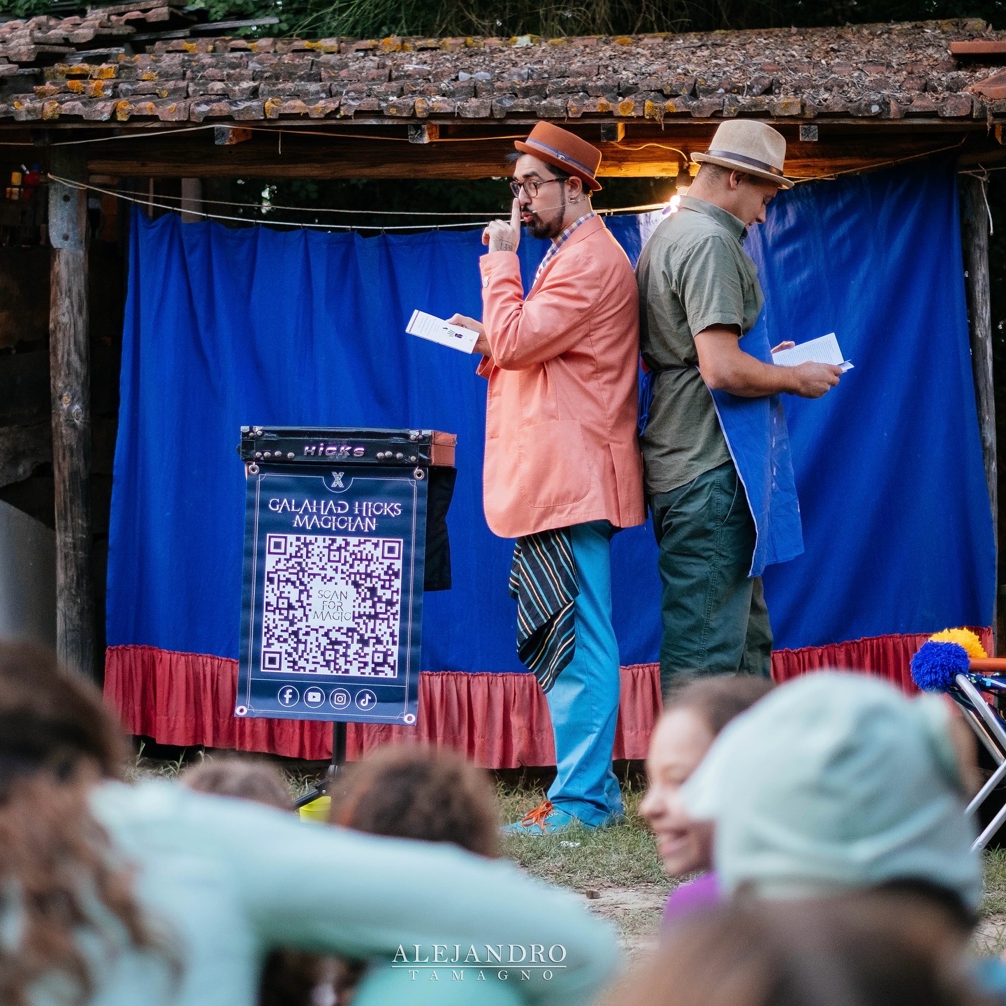 “Street Magic” è uno show di un’ora pensato per divertire e sorprendere ogni età. Con il pubblico sempre coinvolto, nasce un’atmosfera di pura meraviglia e risate. Porto in scena classici della street magic internazionale rivisitati con stile e comicità: dal mistero delle corde e l’anello, all’apparizione di una bottiglia di vino, fino al celebre Cups & Balls, antico quanto la magia egizia. Un ritmo frizzante, interazione continua e un motto: “Mai fidarsi di un prestigiatore!”.