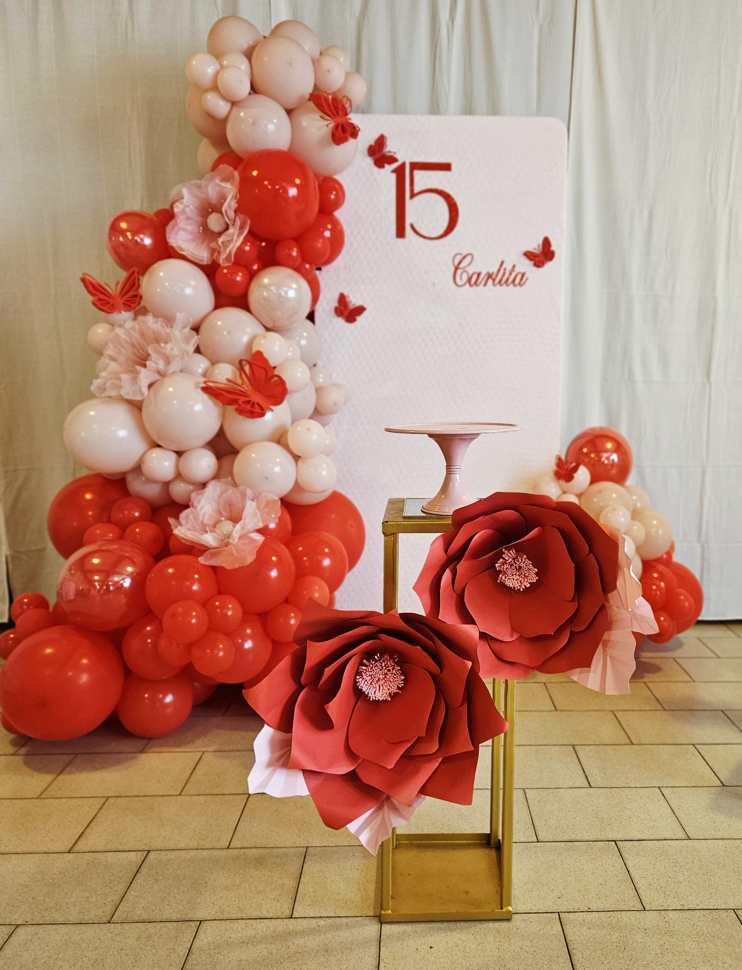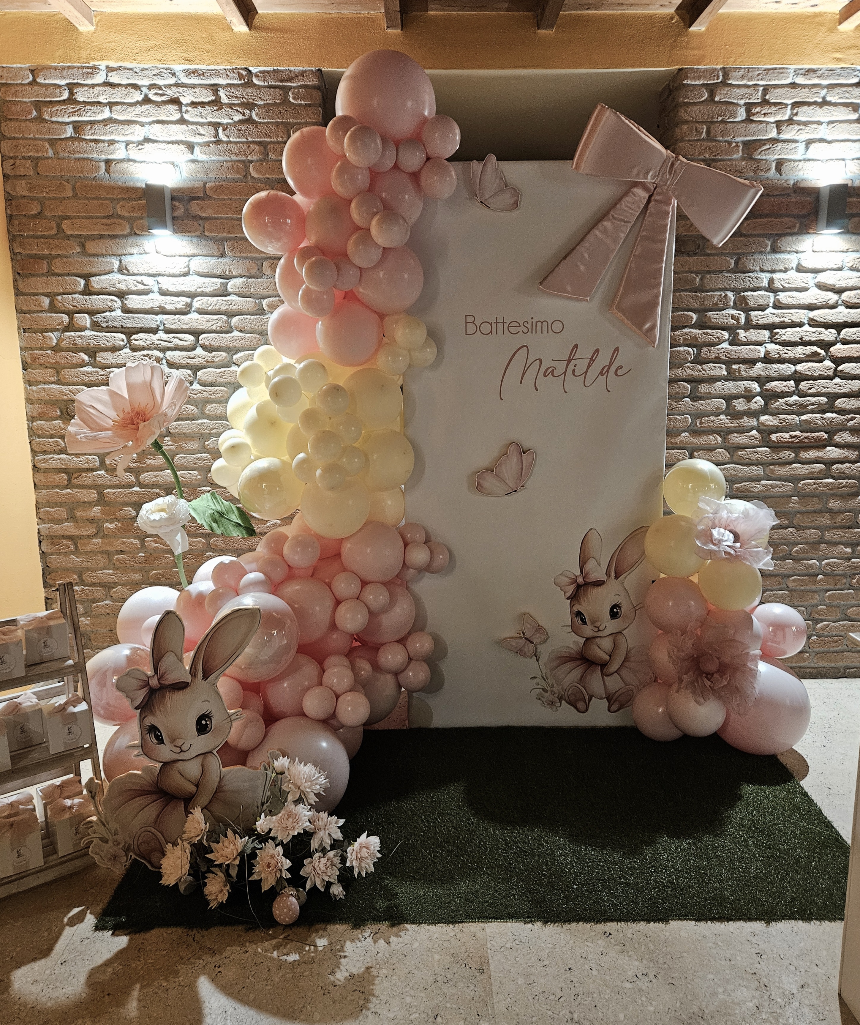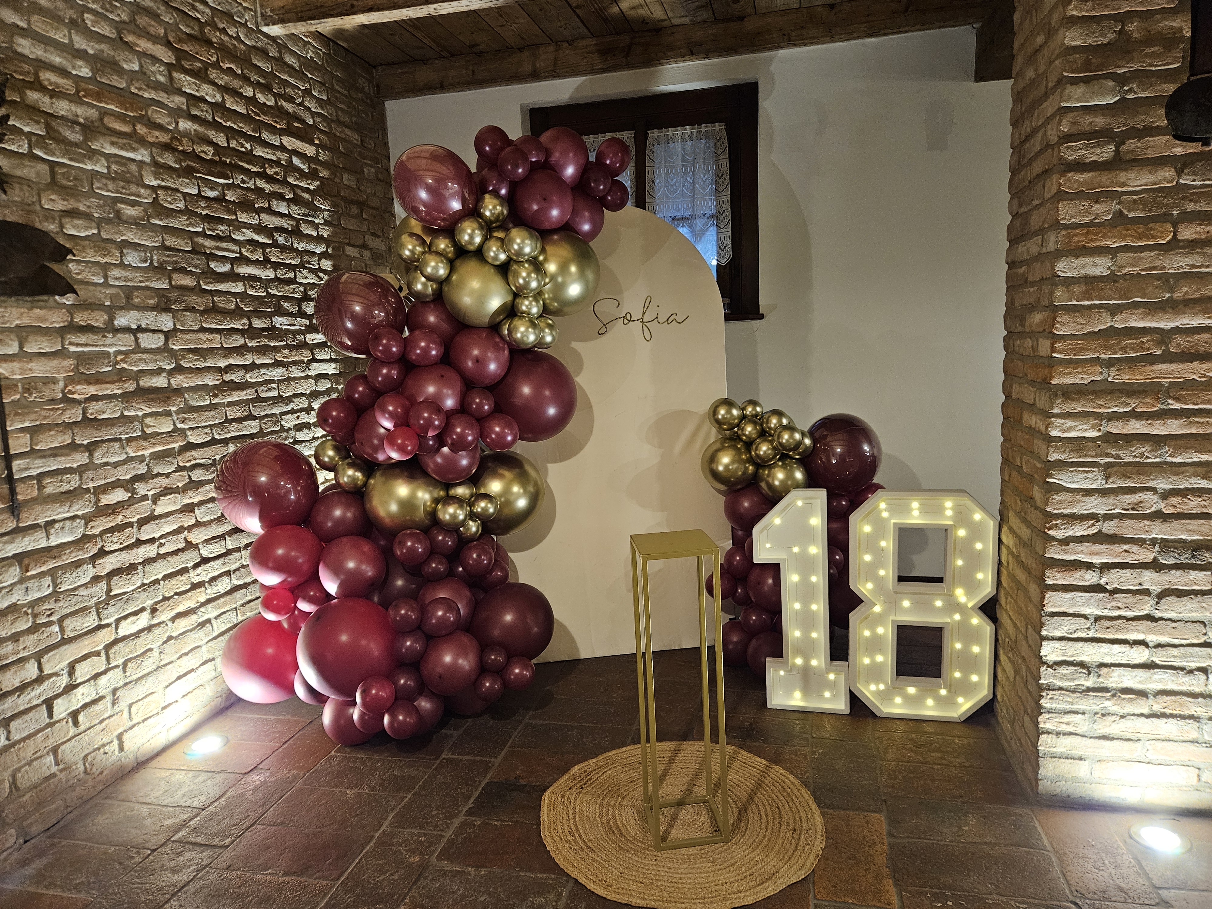 un lato e un arco posizionato dalla parte opposta pi piccolo , nella parete in mezzo il nome della festeggiata (o)