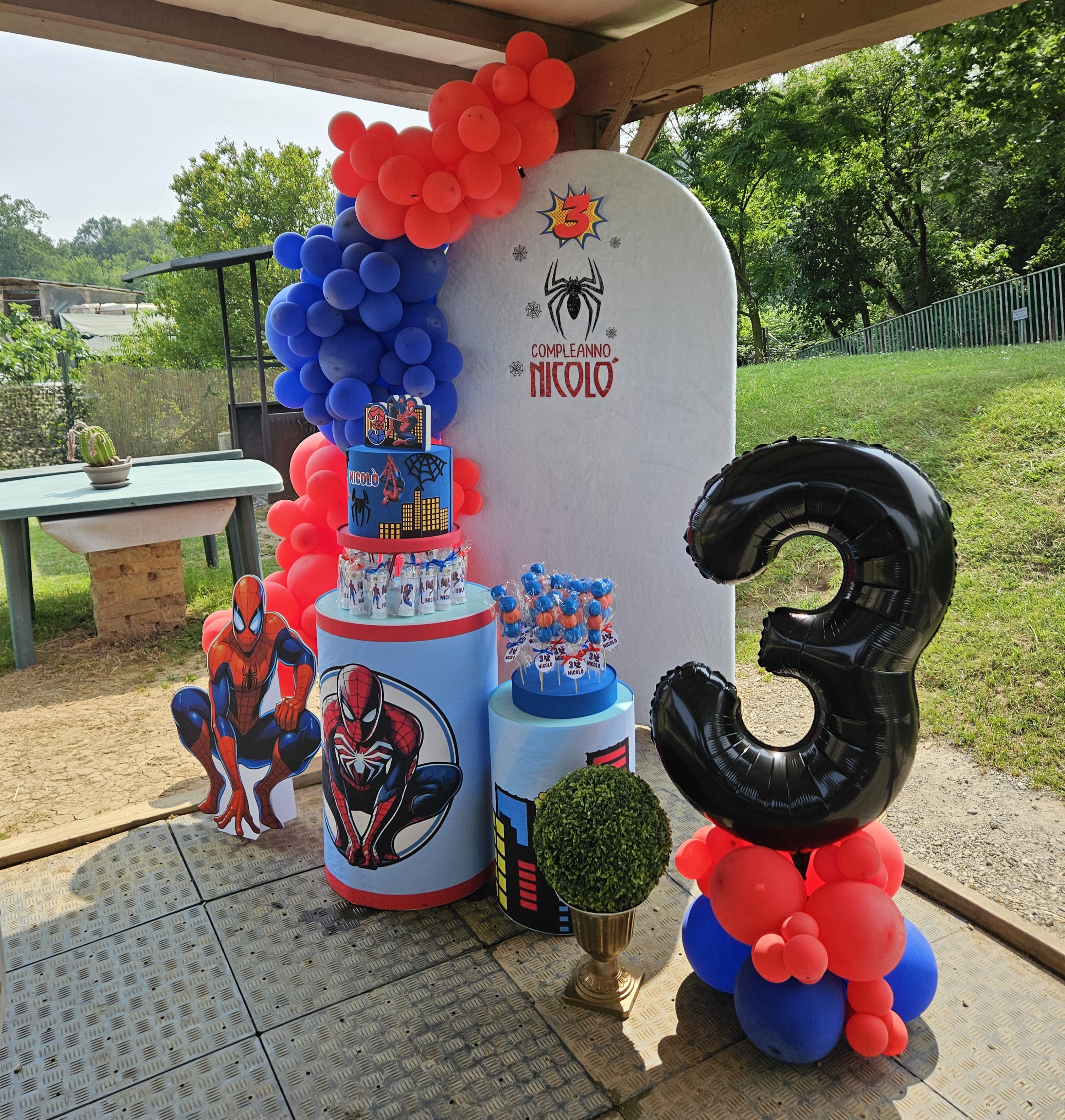Allestimento con 1 parete rettangolare o semitonda del colore o tema a vs piacimento , con arco di palloncini messi a
