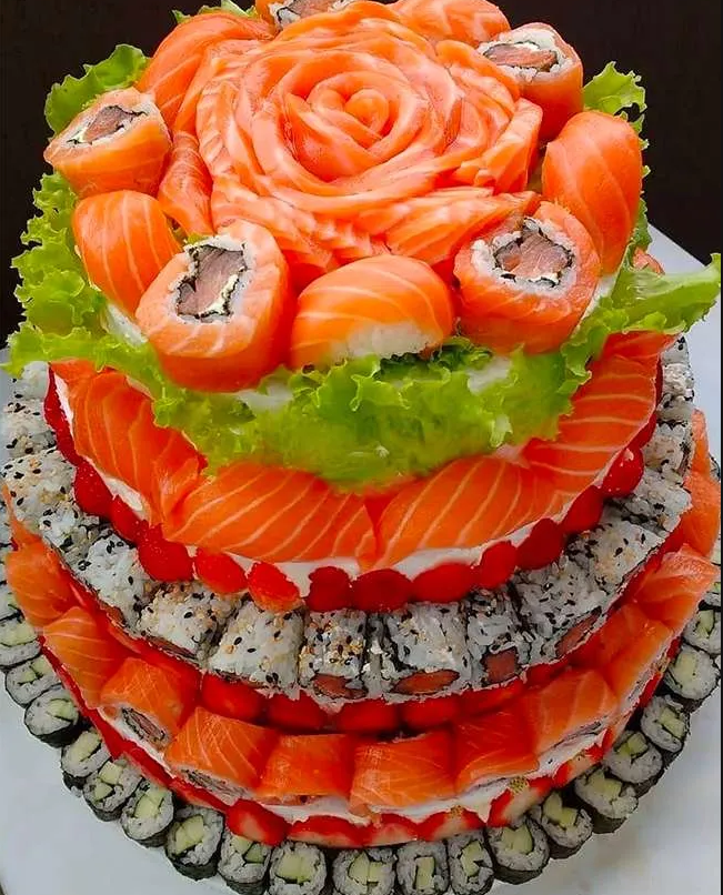 - Selezione di sushi creativo di pesce crudo e cotto