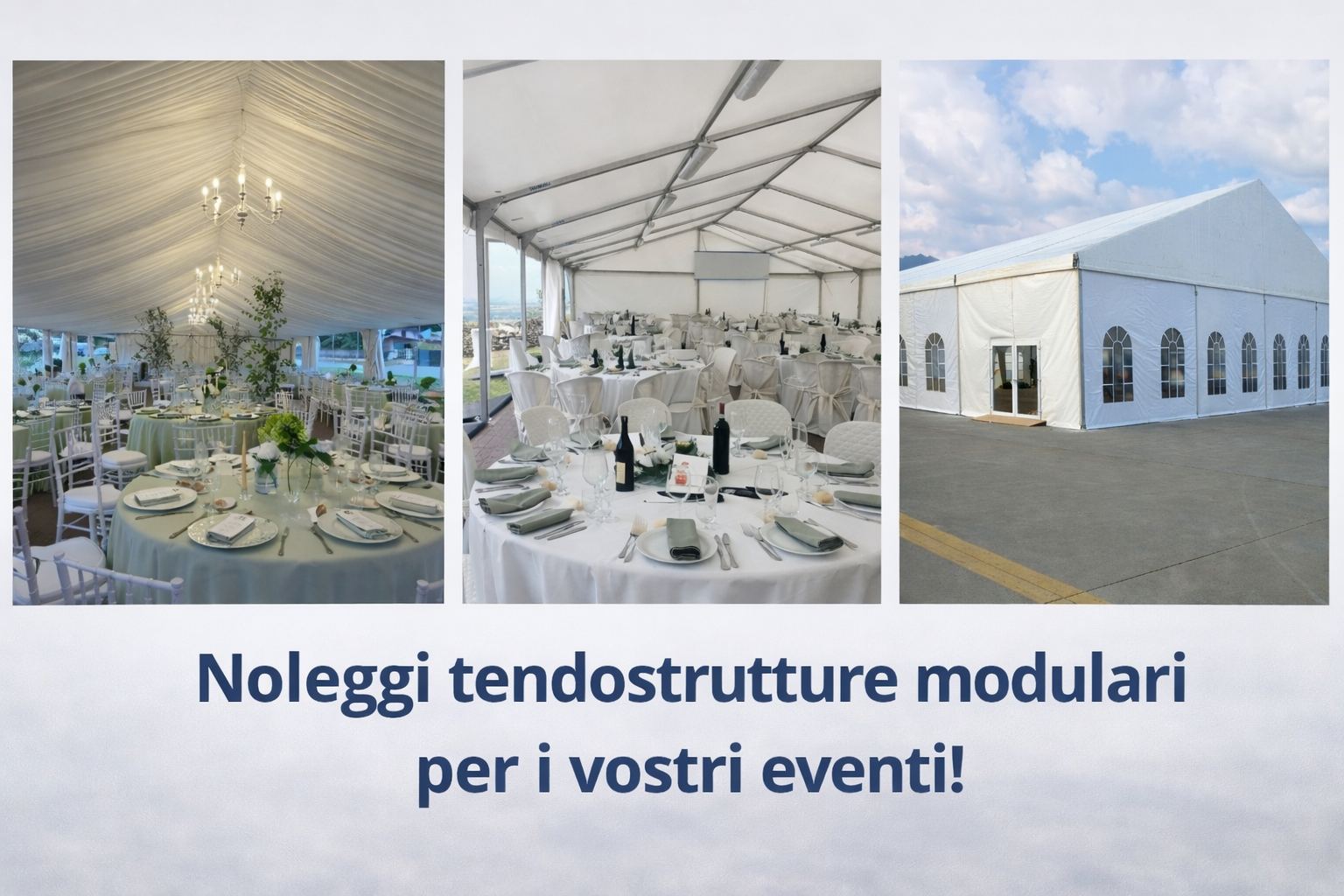 Noleggiamo tendostrutture esclusive, accompagnate da allestimenti unici e personalizzati, progettati su misura per ogni esigenza. Offriamo un servizio di catering raffinato e mettiamo a disposizione un’ampia gamma di attrezzature a noleggio: tavoli, sedie, pavimentazioni, palchi, sistemi di riscaldamento, luci, audio professionale e macchine del fumo.