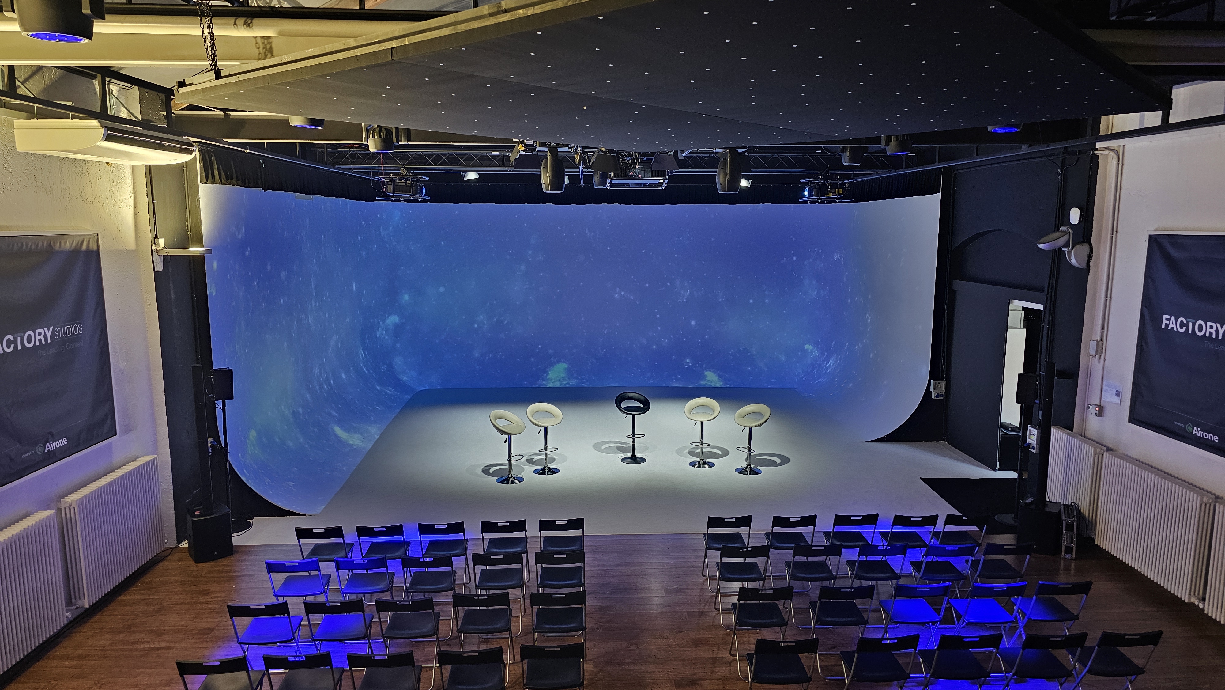 A versatile, innovative, immersive space with a contemporary design, conceived to easily adapt to any format (immersive events, photoshoots, presentations, video productions, and live shows) thanks to its state-of-the-art, pre-integrated technical equipment, ready for use.
