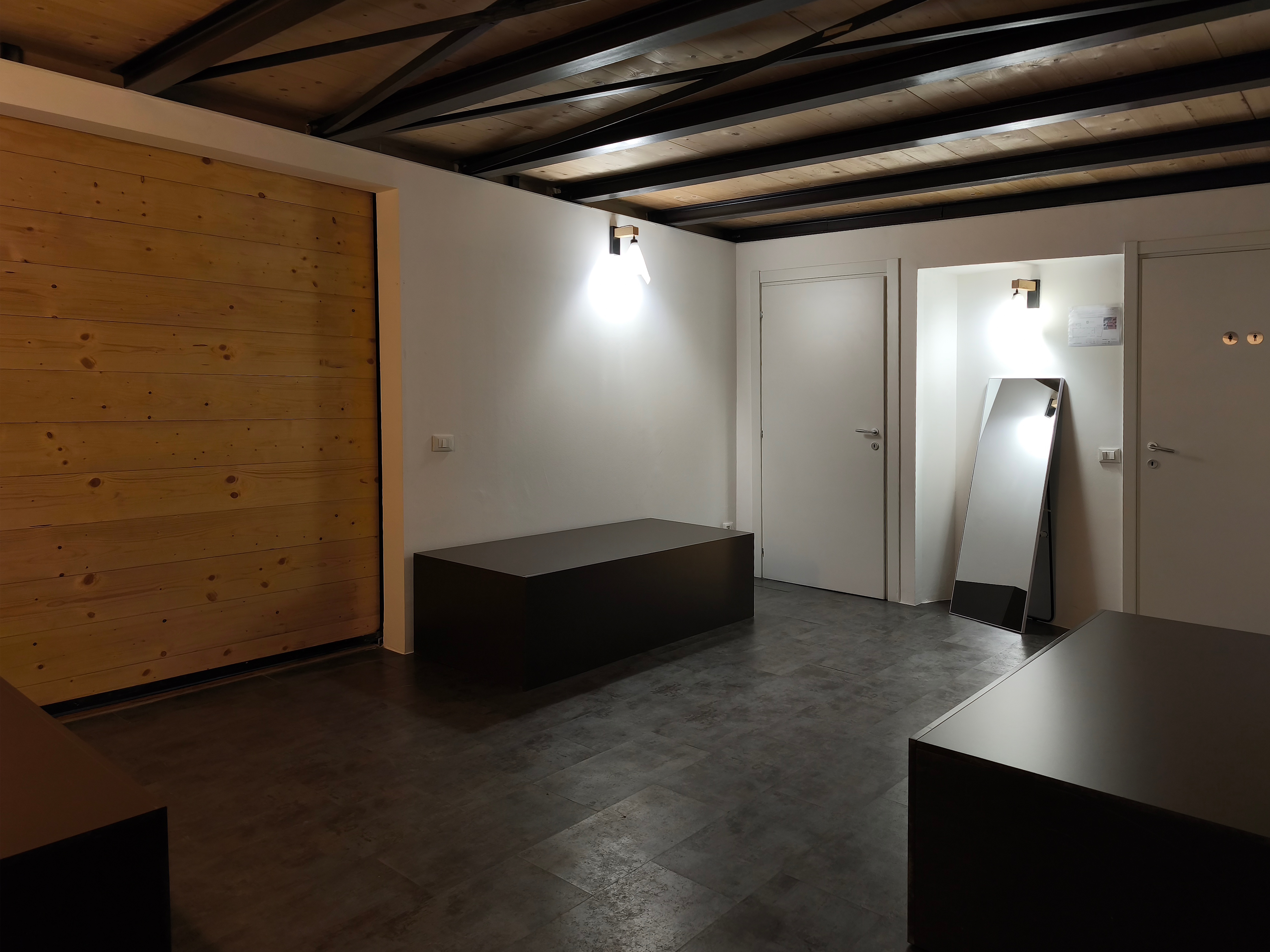 SALONE IMMERSIVO - La sala principale di 220 metri quadrati è dotata di un imponente limbo di 9x9 metri e di un impianto audio e luci integrato. È uno spazio immersivo, tecnicamente all'avanguardia e versatile, ideale per shooting fotografici, produzioni video, meeting, conferenze, lanci di prodotto, nonché cene aziendali, eventi privati e feste. La sala dispone anche di un Corner Bar e di un accesso diretto dal cortile per facilitare il carico e lo scarico.