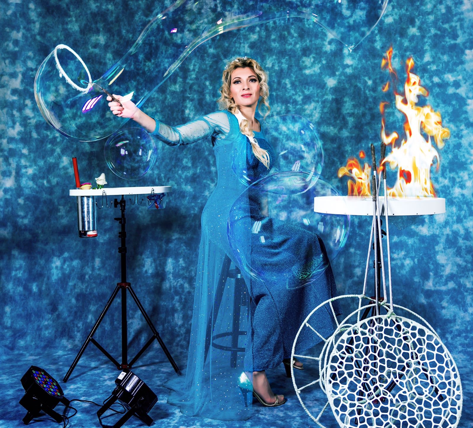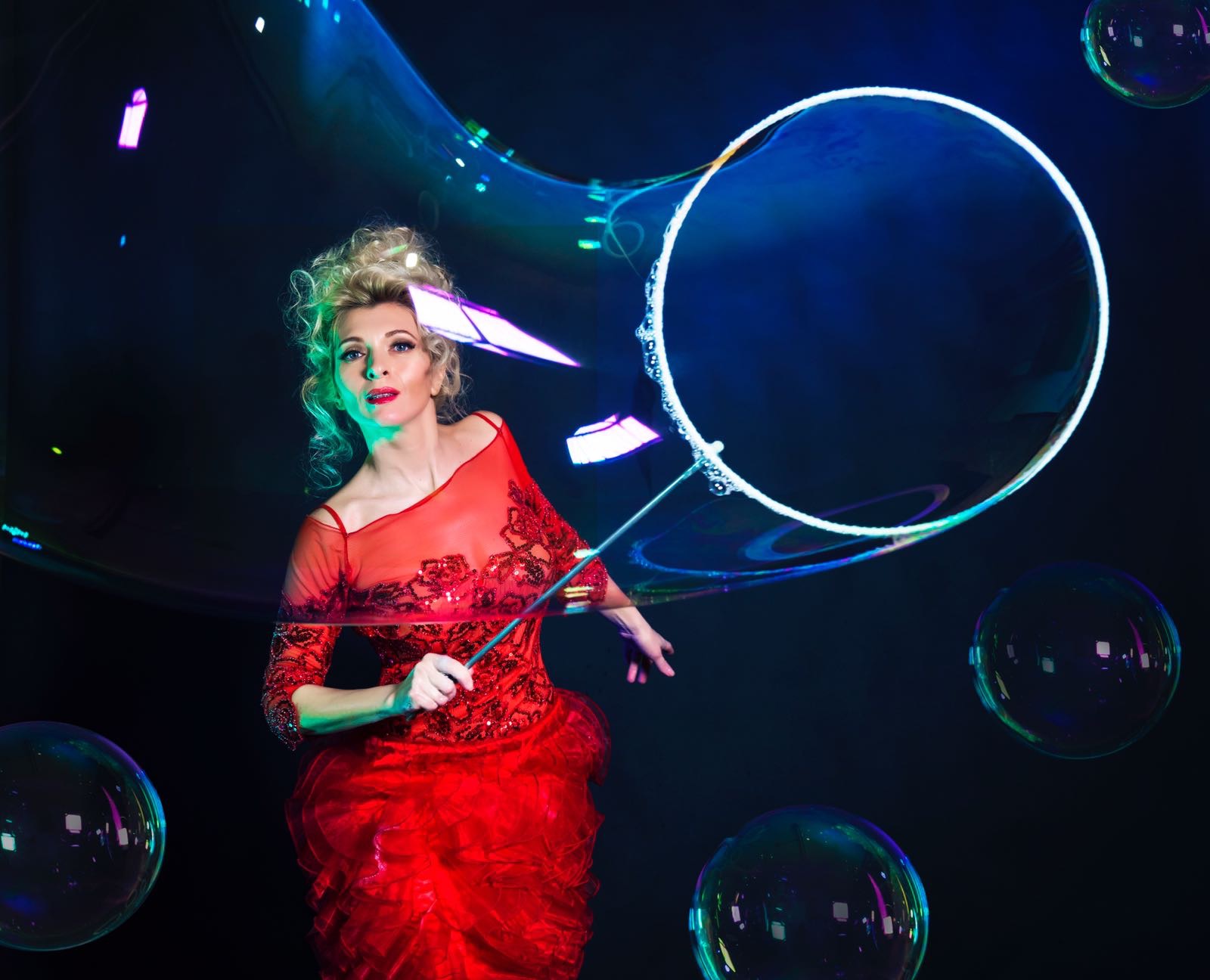 Faccio parte del mondo dello spettacolo da oltre 15 anni e propongo un progetto originale dedicato all’arte delle bolle di sapone, arricchito da effetti speciali.