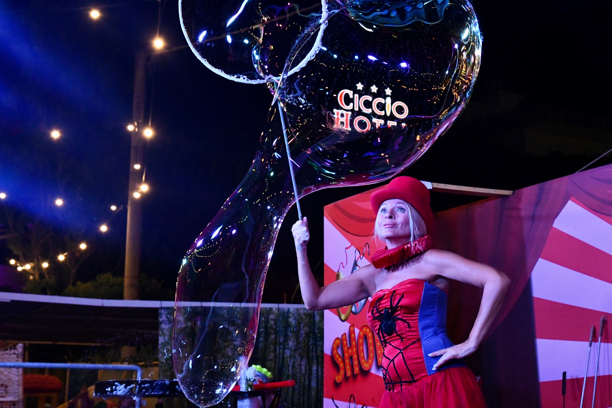 I miei spettacoli sono realizzati con attrezzature professionali, accompagnati da sottofondo musicale e giochi di luce che esaltano le evoluzioni delle bolle, creando un’atmosfera magica.