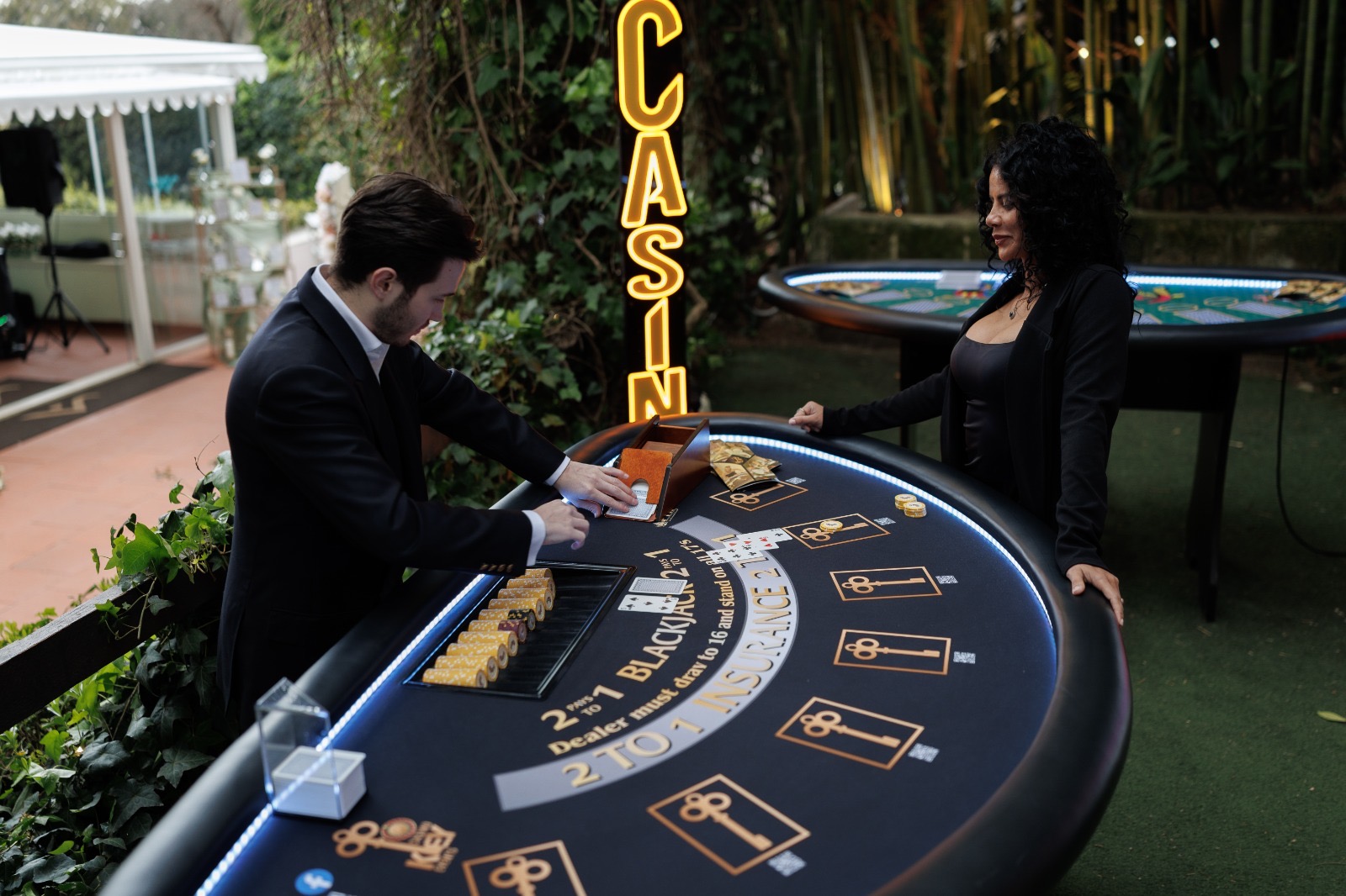 Tavoli LED, scenografia immersiva, hostess e steward Casino e giochi come Roulette, Blackjack, Sette e 1/2, Poker Texas Hold’em e Craps trasformano ogni evento in un’esperienza coinvolgente, raffinata e indimenticabile.
