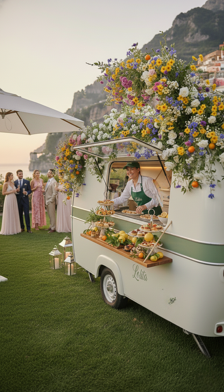 Lolità Bar & Catering è una roulotte vintage trasformata in un bar e catering itinerante, pensata per eventi privati, matrimoni e feste all’aperto.