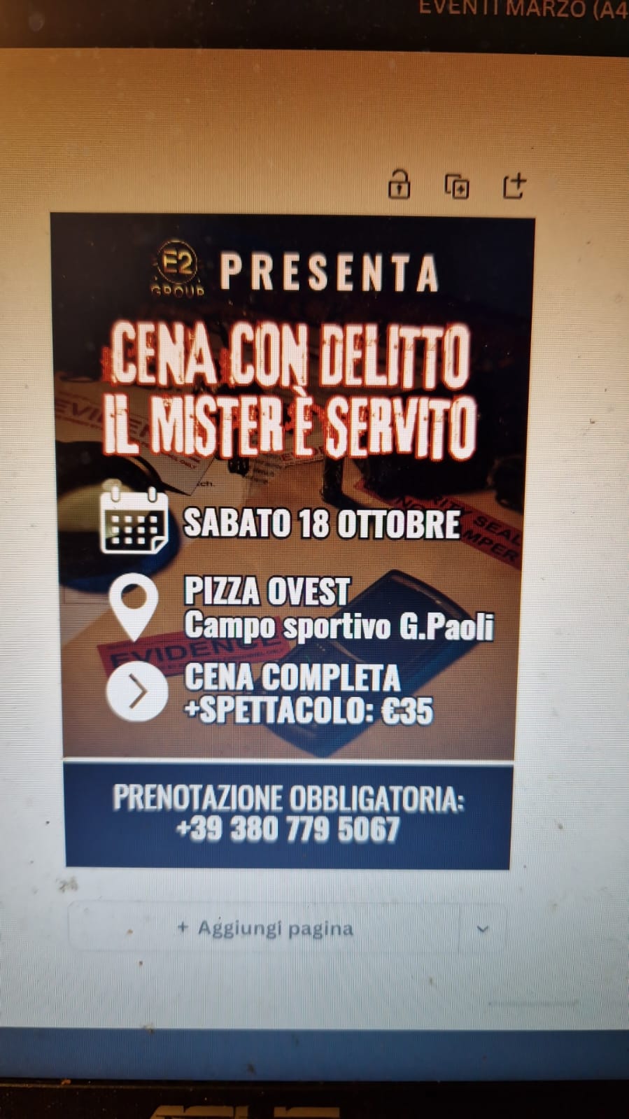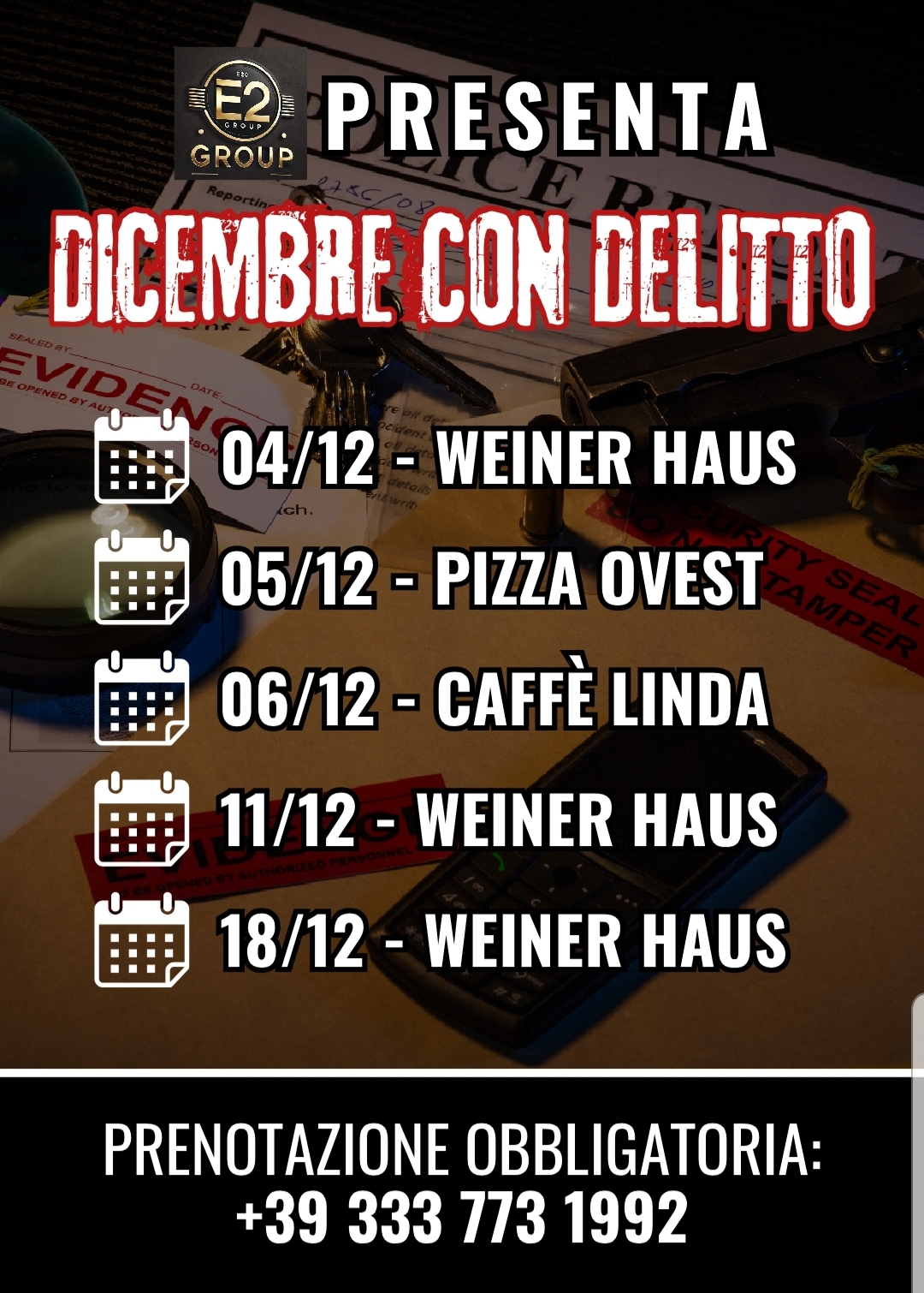 Tra le esperienze più richieste figurano le Cene Con Delitto veri e propri spettacoli teatrali che immergono gli spettatori in un'atmosfera inedita e divertente, oltre a cene spettacolo a tema, team building esperienziali, i format Party con noi, Flower Power e Twist & Shout, Open bar per inaugurazioni o eventi aziendali, Chef a domicilio e serate di intrattenimento pensate per aziende, gruppi privati e serate a calendario.