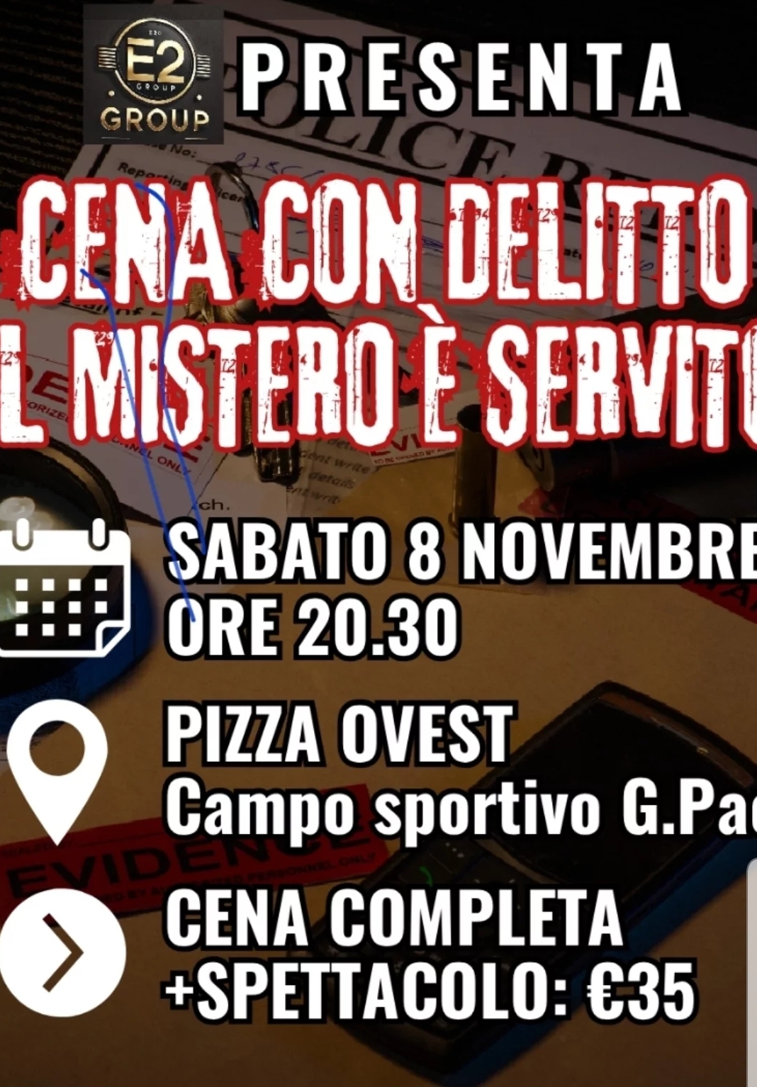 E20 Group cura l'evento in tutte le sue fasi, dall'ideazione del format, alla gestione artistica, dal coordinamento degli attori, performer e collaboratori alla definizione delle tempistiche, integrandosi con il servizio di ristorazione e l'organizzazione della location.